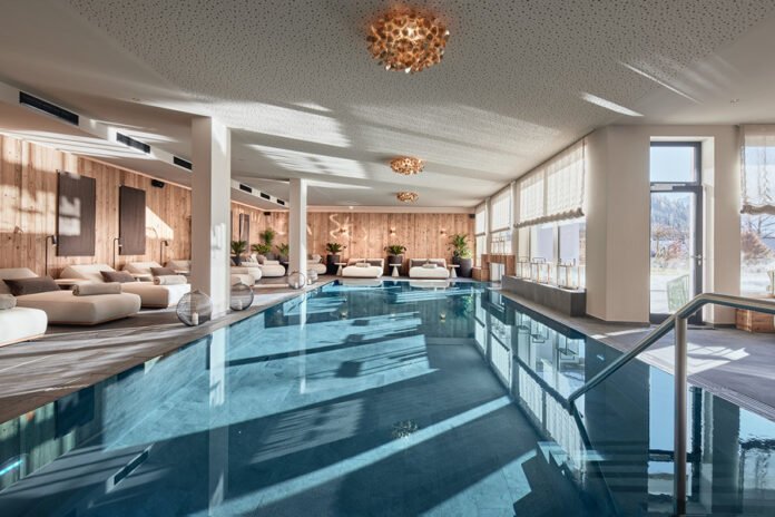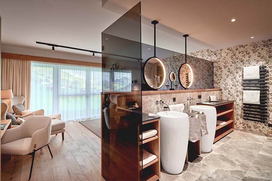 Die Architektur des Resorts ist ebenso visionär wie funktional. Sie vereint moderne alpine Linienführung mit hochwertigsten Materialien und schafft ein Umfeld, das Ruhe und Lebensenergie zugleich ausstrahlt. In das Haus fließt die alpine Umgebung hinein – durch großzügige Glasflächen, natürliche Materialien und eine Raumlogik, die Offenheit und Geborgenheit verbindet.